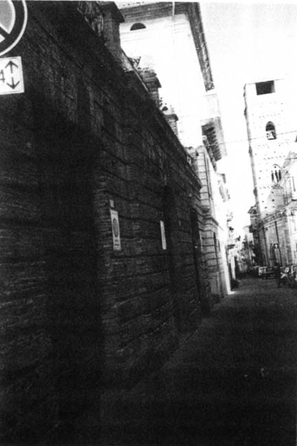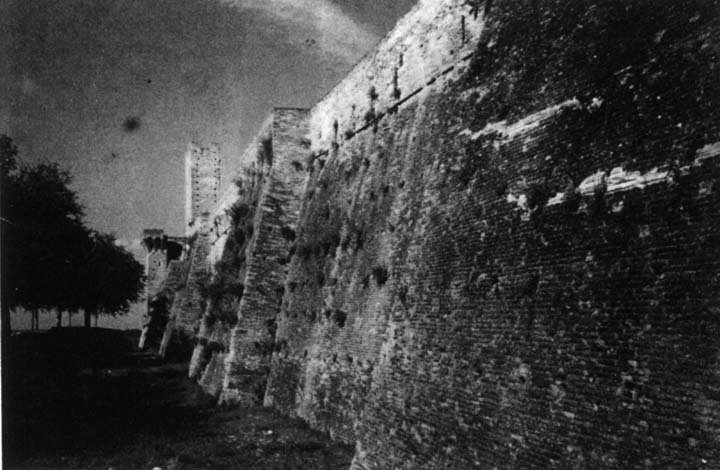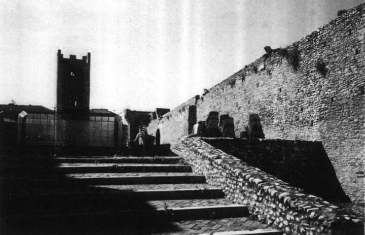 A few blocks to the west of our villa, Via Garibaldi exited at huge stone walls, towers, and battlement, the 11th Century "Torre Montonare," the largest remnants of the ancient walls that once surrounded the old city. The walls continued north, facing the front lines, then turned west at right angles to form a large protected space promptly taken over by our workshops.