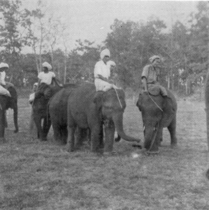 On occasions the trainer will pay a European Assistant the compliment of asking him to christen an animal. In one forest I had a Hitlah and a Musso. In another I had a solitary female calf named Susan Ma after my wife. Twelve years later, by an extraordinary coincidence, I spoke to the rider of a fine young elephant seventeen years old---the first animal to be recovered from the Japs after the evacuation of Burma.