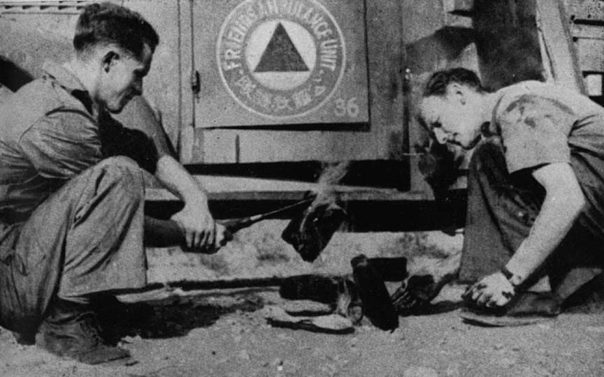 "The picture to-day, after sixty years, is disappointing . . . . The Society of Friends as it is to be seen in west China to-day, is still an alien growth with no roots in the soil . . . . And then comes the Friends Ambulance Unit, followed by the American Friends Service Committee ---a hundred young western men and a handful of women, giving their services to China for the period of the war, striving in a number of ways to fill in the great vacuum of medical skill for the soldiers and civilians of China.