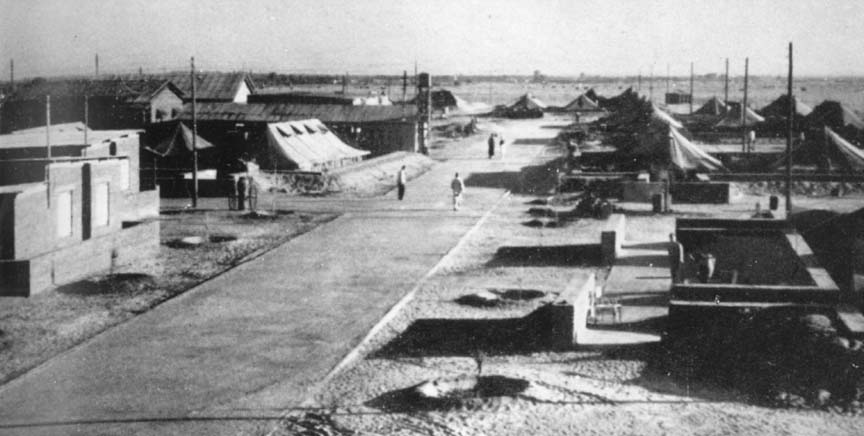 Once they started on their way, familiar scenes passed in review ---desert camps, cheery Aussies grinning and calling, orchards, unkempt villages, desolate wastes of sand and barren salt flat, marshlands in which natives poled flat-bottomed fishing boats. Myriads of mosquitoes clouded doorways and windows; fortunately either humble males or, if females, not thirsty for blood, for they left the men in peace. Against a background of distant sea, gulls wheeled and dived about a drainage outlet.