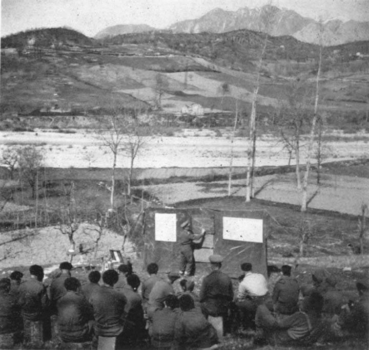 For the first time since they began fighting in Italy, all units of 2 NZ Division were able to enjoy a complete rest while they remained assembled in the vicinity of Arce, far from the sound of gunfire and amid the quiet, peaceful beauty of the lower Liri Valley. Much valuable training was done, and refitting and maintenance of vehicles undertaken in preparation for the Division's return into action. Advantage was also taken of the opportunity to check and overhaul equipment and make good any deficiencies.