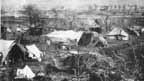 The reception shelter was not badly damaged, and the staff busied themselves sewing patches over the holes. The evacuation shelter and truck canopy had to be replaced.