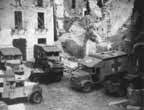 Still the battle went on amongst the smoke and houses below, with the infantry attempting to clear the town in spite of the hidden snipers and machine-gunners. With the support of tanks, the 26 Battalion attacked and occupied the railway station. The enemy shelled and mortared the town, and the Allied artillery responded with heavy concentrations that appeared to be gradually putting the enemy guns out of action. At the ADS, ambulance cars moved out and down the road to the town as they were needed. In view of the exposed nature of the RAP positions, the ambulances remained at the dressing station until ordered by telephone. Normally they reached the battalions unmolested; but often the roads were under heavy fire, and the drivers and orderlies were compelled, time and again, to leave the vehicles and dive into the nearest ditch.