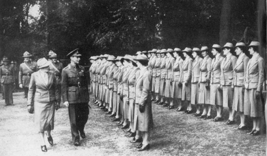 King inspects Sisters from 1 NZ General Hospital at Mytchett. With him is Matron