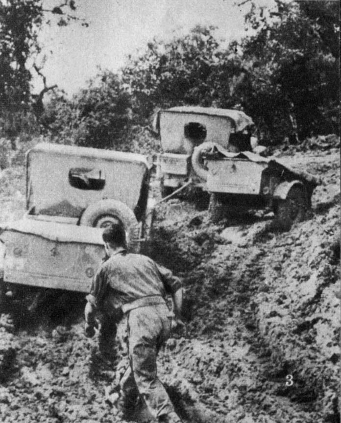 The damp and the heat bring malaria, sprue, dengue, dysentery and jaundice. During the first six months of 1944 there were 237,000 hospitalized disease and fever cases in the 14th Army alone (eighty-five per cent of its combat strength). If you try to march in a mosquito net it is ripped to pieces by the undergrowth; if you cover yourself with anti-mosquito cream, you are ready to burst after 100 yards, for it clogs the sweat pores. So you eat anti-fever atabrin tablets, which turn you yellow, and salt tablets to put back what you lose from sweat, and you trust the medics to get you back to duty from the malaria in three to four weeks. (They do it, too, which is one of the war's miracles.)