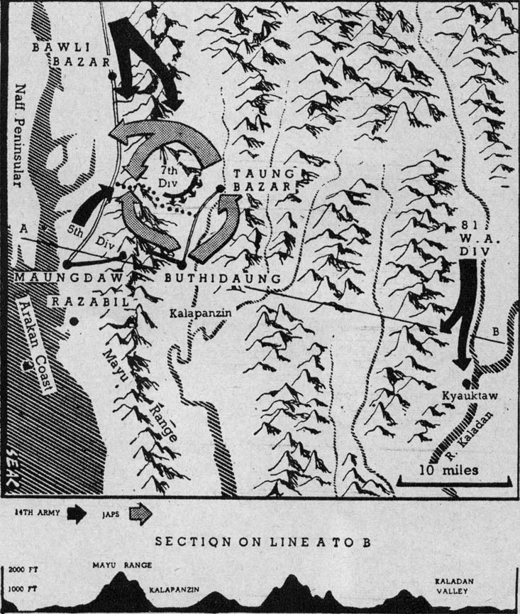 3. To advance in Arakan to the Buthidaung-Maungdaw road. (C on map.)