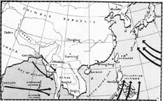 Their long term objective was the tightening--- towards an ultimate throttling grip--- of the offensive ring around Japan and her ill-gotten Empire: a ring whose steel spikes were Nimitz, MacArthur and Mountbatten.