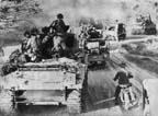 But while the Jap was looking to his front, where a feint attack was carefully staged to keep him looking at it, Slim leapt on his rear. A powerful task force under General Messervy---tanks, armored cars, artillery and truck-borne infantry---after a series of forced marches through the roadless Chin Hills, suddenly emerged on the Irrawaddy, far to the southwest. They crossed the river on anything that would float, plunged through the Jap lines, and struck for Meiktila, H.Q. of the Japanese 15th Army, eighty miles behind Mandalay. Inside eleven days this force, paced by fighter-bombers, had captured first the eight airfields and then the town itself; whereupon the armor drove on to take Thazi, an almost more important road and rail junction fourteen miles east. With these two strokes, Slim had clamped a gigantic double "stopper" onto the whole network of supply lines in General Katamura's rear, putting an estimated 30,000 troops in jeopardy. With their escape routes to the south cut and the main body of the 14th Army, a quarter of a million or more strong, bearing down on them from the north, all that the Jap could see at the end of a hard fight for Mandalay was a scattered and precarious exit eastwards across the Shan Hills into Siam.
