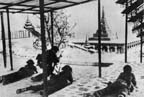 This is the country the British and their Allies have been fighting in, back and forth, for nearly four years. Thousands of British soldiers, because of the long distance from home and shipping stringency, had to stick it out in Burma for years without seeing their families. Their only respite--- a few days' furlough in India.