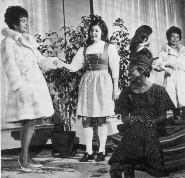 (L. to r.): Mrs. I. R. Rector, President, Deda Loefler, Austria '70, and Ekua Budu-Arthur, Ghana '70, were among the models at "An AFS Festival of Fashions." Five hundred enjoyed a combination show and luncheon, sponsored by the Detroit AFS Board to spotlight AFS activities and raise funds.