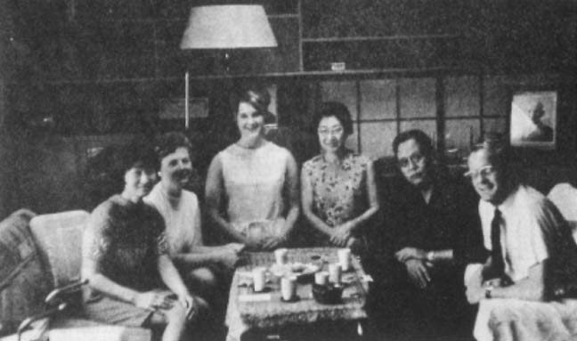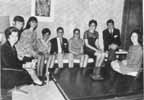 In high spirits, nineteen AFS Overseas Chaperons enjoy a farewell party at the home of Mr. and Mrs. Arthur Howe, Jr. [Photo---Kimmo Stjarnstedt AFS/61 Finland]