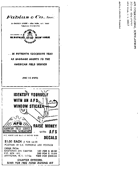 Under the leadership of the Central N. Y. AFS Committee, a fund has been set up to finance the scholarships. Contributions to date will underwrite one scholarship annually for four years. The committee hopes, through further contributions, to extend the annual awards. Donations may be sent to AFS/Int'l., marked "George Goldstein Memorial."