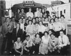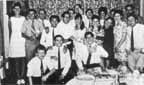 Pictured are (l. to r.): Mrs. Sofia Mathioudakis-Taher, Apostolos Axiotis, Charis Sakellaridou, Lili Valsami, Marina Parai, Mrs. Eva Bony-Nicolopoulou, and Mrs. Asimina Tsimbou-Tsori. The two gentlemen center and right are Returnees from Crete, now studying in Rhodes.